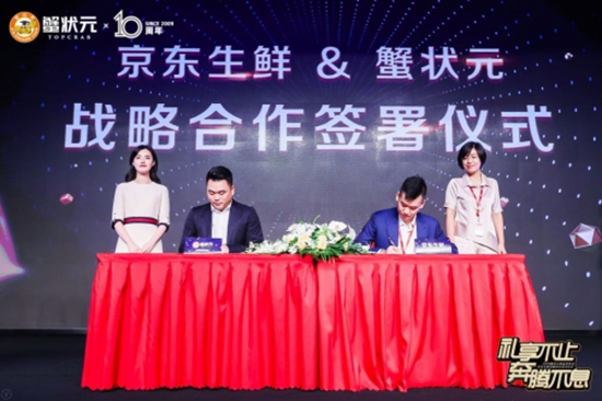 2019年作为蟹状元成立10周年之际,与京东签订了战略合作,通过无界零售开启了新的起点,让蟹状元大闸蟹品牌线上+线下渠道更为完善,以打破行业壁垒。选择京东生鲜开放平台合作也是因为想要借助平台的力量,蟹状元相信,与京东生鲜开放平台合作后,日后的业绩成长也是超出预期结果的,意义也是在于提升自己的品牌特色和影响力。为此,我们协同并进,互利共赢,让所有人都知道“买蟹状元,上京东生鲜”!
